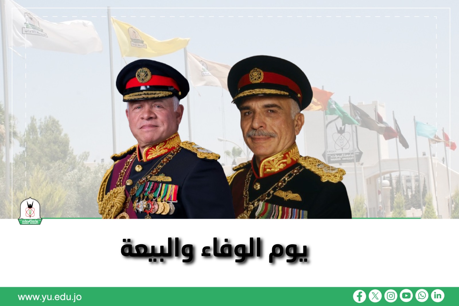 تحيي جامعة اليرموك، اليوم السبت السابع من شباط، الذكرى السابعة والعشرين لـ "يوم الوفاء والبيعة"؛...